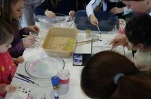 16 сентября состоялась «Творческая мастерская эбру» для детей города, который провела преподаватель Детской школы искусств Кудряшова Наталья. Эбру – искусство рисования на воде. Эта техника пользовалась спросом у императора и его приближенных еще в 12 веке в Турции. Рисование на воде Эбру означает, что поверхностью для нанесения узора служит жидкость. Правда, это не обычная вода, да и краски тут нужны специальные. В жидкость добавляют экстракт гевеи – он делает ее густой и вязкой, благодаря чему цветные капли не тонут и не смешиваются, как в обычной воде. Сами краски делаются на основе бычьей желчи и особых минералов. Вся техника основана на абстракции и произвольном узоре. Жидкие краски хорошо растекаются по поверхности, а с помощью тонких палочек и гребней художник придает кругам на воде форму.