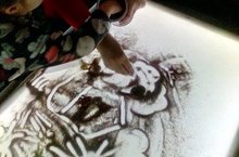 10 декабря преподаватель Детской школы искусств Наталья Кудряшова провела занятие с особыми детьми младшего возраста в рамках Декады инвалидов. По мотивам русской народной сказки «Курочка Ряба» на светящемся столе, цветным песком педагог изобразила главных персонажей сказки: деда, бабку в платочке. С помощью бумажного трафарета дети с педагогом изобразили деревянный дом, большими пуговицами украсив его фасад. Построили курятник, посадив на жердочку курочку, а также солнце и забор.