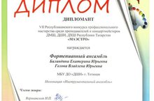 В декабре преподаватели Детской школы искусств приняли участие в VII Республиканском конкуре профессионального мастерства среди преподавателей и концертмейстеров ДМШ, ДШИ, ДХШ Республики Татарстан «МАЭСТРО», проводимом в г.Казань. В конкурсе профессионального мастерства приняли участие 33 солиста, 45 художников, более 27 коллективов из городов и районов РТ: г.Казань, г.Набережные Челны, г.Заинск, г.Альметьевск, г.Бугульма, г. Нижнекамск, , г.Зеленодольск, , г.Чистополь, г.Нурлат, г.Агрыз ,г.Болгар, г.Тетюши, г.Азнакаево, г.Арск, г.Кукмор, п.г.т.Апастово, п.г.т.Алексеевское, п.г.т.Аксубаево, п.г.т.Балтаси, с.Черемшан, с.Большие Кайбицы.