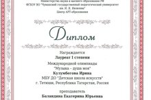 Успехи на Международной олимпиаде «Музыка – душа моя!», посвященной творчеству великого композитора М.И.Глинки. 28.03.2019