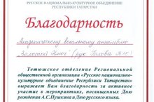 6 июня академический вокальный ансамбль «Золотой Ключ» Детской школы искусств принял участие в праздничном мероприятии «Тебя, как первую любовь, России сердце не забудет», посвященного Всероссийскому Пушкинскому дню и Дню русского языка, проводимого под эгидой местного отделения политической партии «Единая Россия», Тетюшским отделением «Русское национальное объединение РТ» и МБУ «Тетюшская межпоселенческая библиотека».