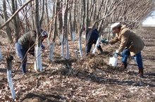 Коллектив ГАПОУ «Тетюшский сельскохозяйственный техникум» проводит побелку деревьев в посадке. Дружная работа позволит выполнить закрепленный объем работ в минимальные сроки. Благоустроенная посадка будет радовать своим видом жителей района и туристов на пути следования в усадебный комплекс Долгая поляна.