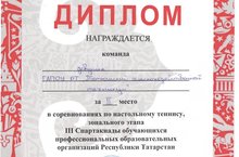 Успешным стало выступление команды девушек по настольному теннису. Лисина Мария (11 группа), Камалетдинова Гузель (33 группа) и Полковникова Дарья (28 группа) заняли 2 место, уступив только девушкам Буинского ветеринарного техникума.