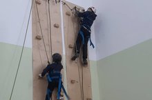 Участники соревновались на дистанции – пешеходная личная, преодолевали этапы: навесная переправа, спуск по вертикальным перилам, подъем по стене с зацепами.