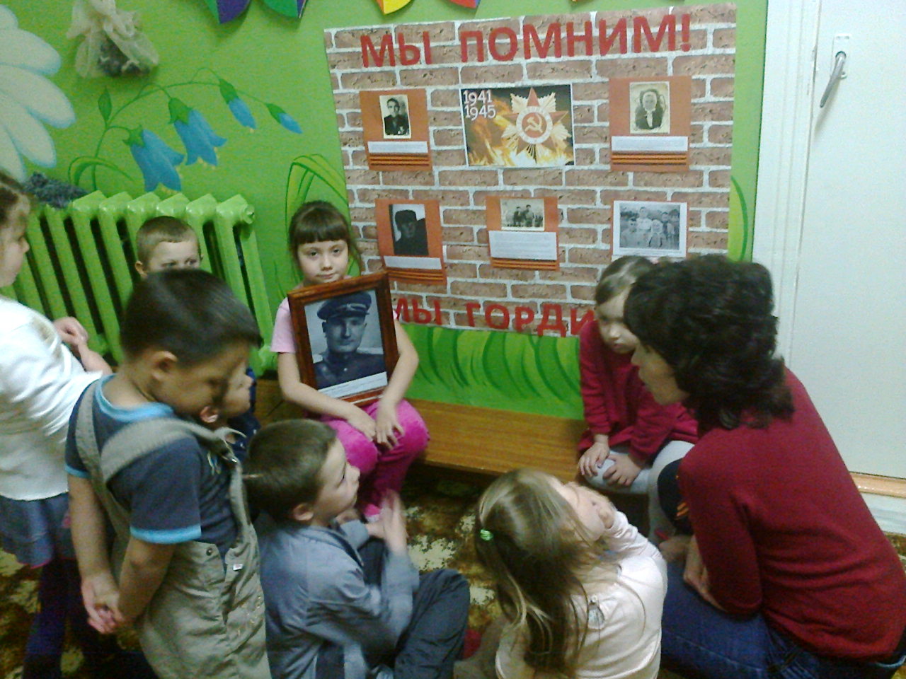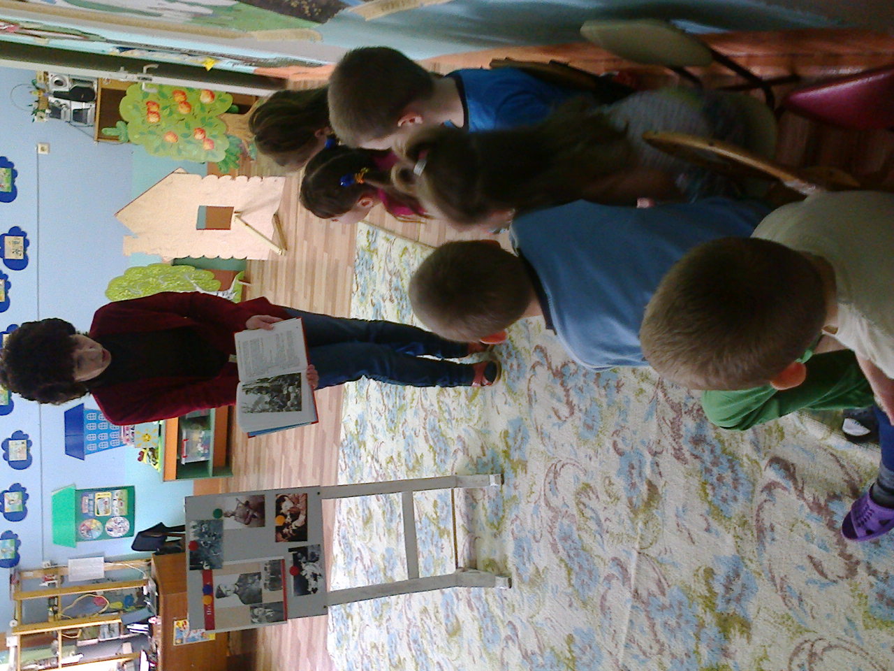 .jpeg фото как воспитатель читает книги о войне детям и рассматривают иллюстрации
