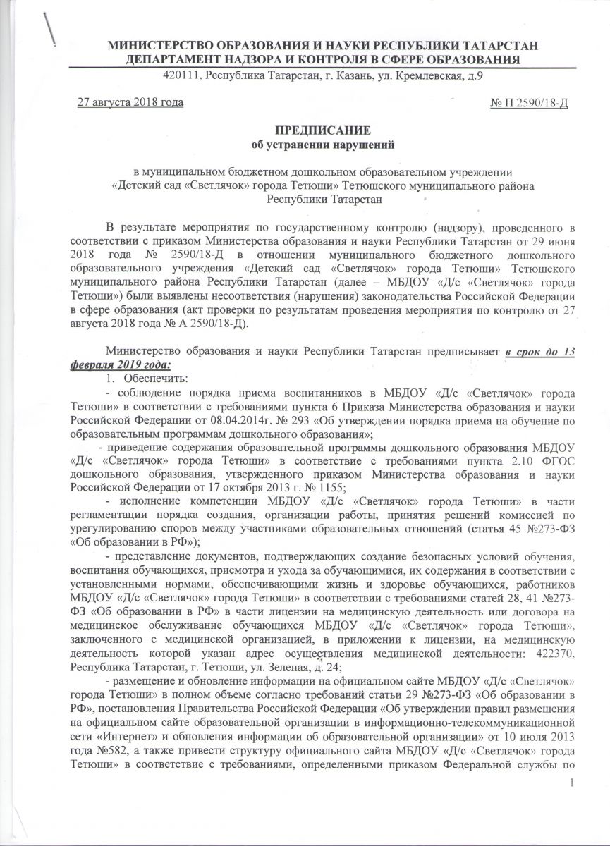 | Короткое название: | МБДОУ «Детский сад «Светлячок» города Тетюши» |