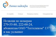 «Линия надежды» оказывает помощь отчаявшимся людям, оказавшимся в тяжелой жизненной ситуации, помогает вернуть веру и надежду.«Линия надежды»- единственная в Республики Татарстан медицинская психологическая служба: