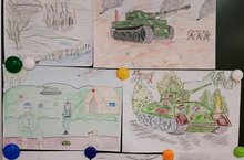 В 7а классе (кл.рук.Л.Г.Мухаметшина) был проведен конкурс рисунков на военную тематику, по результатам которого оформлена выставка.