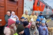 Учащиеся посетили шесть платформ с выставочными образцами техники военных лет, санитарный вагон и два вагона-теплушки с полевой кухней. Во главе поезда наблюдали легендарный паровоз серии Л-4302. -