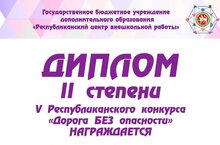 Ученица 5 класса, Ризаева Р. (рук. Лазарева Л.Н.) награждена дипломом ll степени в V республиканском конкурсе "Дорога БЕЗ опасности".