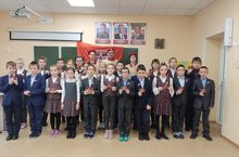 Каждому юнармейцу в этот день выпала честь принести торжественную клятву: всегда быть верным своему Отечеству, соблюдать устав «ЮНАРМИИ», следовать традициям доблести, отваги и товарищеской взаимовыручки, защищать слабых, стремиться к победам в учебе и спорте, чтить память героев. В знак принятия в ряды Движения каждый участник получил удостоверение и нагрудный значок. (начальник штаба «ЮНАРМИЯ» Ванюхин А.В., кл. рук-ль Чернова Е.В.) -