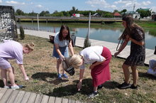 Сегодня с утра девочки пришкольного лагеря труда и отдыха МБОУ «Тетюшская СОШ №1 им.Ханжина П.С.» поливали клумбы. Мальчики поливали газоны во внутреннем школьном дворе, привели в порядок спортивную площадку школы, пропололи траву вдоль ограждения. Все потрудились очень хорошо. Следующая часть дня была посвящена прогулке и подготовке к флеш-мобу. Отряды прогулялись до смотровой площадки городского прудка, отдохнули на скамейках, насладились прохладой от веселого фонтана, начали подготовку к конкурсу. Время пролетело незаметно. На линейке состоялся конкурс флэш-мобов, посвященных «Году родного языка и народного единства», победила - дружба. День прошел очень интересно и весело.