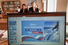18 марта 2014 года произошло важное историческое событие для нашей страны – присоединение Крыма к России. 15 марта в 6В классе был проведён классный час посвящённый одиннадцатой годовщине присоединения полуострова Крым к России. Цели классного часа: приобщить учащихся к истории воссоединения России и Крыма, углубить и расширить знания учащихся по истории России, формировать устойчивый интерес учащихся к истории России; способствовать нравственно-патриотическому воспитанию обучающихся; развитие чувства патриотизма и гордости за свою страну; формирование российской гражданской и цивилизационно-культурной идентичности обучающихся на основе исторических событий, связанных с воссоединением Крыма с Россией. Просмотр видеороликов «Крым – Россия – вместе навсегда».