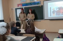 23 января в 1 Б классе юнармейцы, ученицы 9 Б класса Разиля З., Регина Н., провели инструктаж по технике безопасности. Малыши с удовольствием прослушали курс правил по безопасности во время пожара, получили памятки, нарисовали рисунки на тему «Огонь-друг и враг человека».