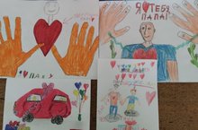Воспитанники группы продлённого дня первых классов (воспитатель Кузьмина Н.Н.) изготовили своими руками открытки-поздравления для своих пап.