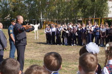 Заместитель начальника 133 ПЧ 8 ПСО ФПС ГПС МЧС России по Республике Татарстан в г. Тетюши Хатыпов Булат Сиреневич и Старший инспектор МОНД и ПР по Камско-Устьинскому и Тетюшскому МР УНД и ПР ГУ МЧС России по Республике Татарстан лейтенант внутренней службы Харитонов А.В. МЧС Харитонов Андрей Владимирович. показали всем присутствующим различные приспособления для тушения пожара, находящиеся в каждой пожарной машине и напомнили ребятам правила поведения при возникновении пожара и возникновении других чрезвычайных ситуаций: