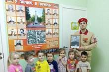 Активист движения "Юнармия", ученик 11 класса ТСОШ № 2, Малкин Дмитрий, принял участие в мероприятии, посвящённом Дню Героев Отечества. В своем выступлении Дмитрий рассказал воспитанникам детского сада "Березка" о своём героическом прадедушке, кавалере Трех Орденов Славы, Малкине Петре Ивановиче. Воспитанники детского сада узнали о подвигах героя и трудностях военных лет.