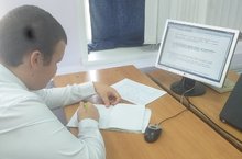 И снова в этом учебном году начались занятия по подготовке к сдаче Единого Государственного Экзамена. Учащийся 11 класса отрабатывает тему" Строение атома".