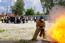 Здесь ребята увидели тренировки студентов при переплаве, через водную преграду, по преодолению полосы с препятствиями и развертывание пожарного ствола в команде, подъёме и спуске на высоту при помощи спасательных верёвок, тушение огня при помощи огнетушителя.