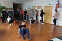 Оставшиеся юноши облагораживали пришкольную территорию, а именно – равномерно разбрасывали шлак на беговую дорожку спортивного городка школы.