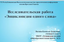 Вагина Камилла, ученица 6Б класса, приняла участие в VI Республиканской Филологической научно-практической конференции имени Ярослава Гашека (секция русского языкознания). Тема исследовательской работы – «Энциклопедия одного слова» (руководитель – Кондакова Галина Викентьевна). Пройдя заочный тур, Камилла получила приглашение на очный тур конференции, который состоится на базе гимназии №7 г.Бугульмы 29 апреля 2022 года. Пожелает Камилле удачи!