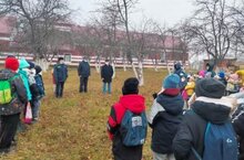 Балалар металлдан "променад" зур күзәтү мәйданчыгын урнаштыру өчен әзерлек эшләренең ничек баруын күрделәр.