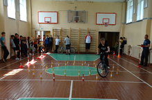 После обеда всё в том же спортзале Похлебкиным А.В. проведены соревнования по фигурному вождению велосипеда.