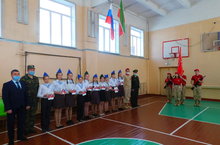 Ряды Юнармии пополнили 10 учеников шестых классов нашей школы, которым вручили юнармейские значки и поздравили с вступлением в ряды организации начальник штаба Юнармии в Тетюшском районе Ванюхин А.В. и начальник Тетюшской Автошколы ДОСАФ Колсанов А.Г.