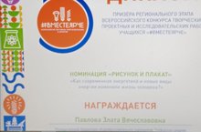 Павлова Злата, ученица 4Б класса (классный руководитель Михеева И. Ю.), награждена Дипломом призёра регионального этапа Всероссийского конкурса творческих, проектных и исследовательских работ учащихся «Вместе ярче!». Поздравляем Злату!