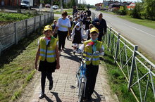 Юные инспектора движения объяснили и продемонстрировали ученикам первых классов, как переходить проезжую часть по пешеходному переходу с велосипедом, пожелали им безопасной дороги и предложили попробовать свои силы в деятельности школьного отряда ЮИД.