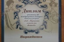 Юдин Кирилл, ученик 3Б класса (классный руководитель Михеева И.Ю.), награждён Дипломом Государственного историко-литературного музея-заповедника А. С. Пушкина Московской области за участие в XV международном конкурсе рисунка «А. С. Пушкин глазами детей». Диплом даёт Кириллу право на бесплатное посещение всех выставок и экспозиций музея-заповедника А. С. Пушкина (Захарово-Вязёмы) в течение 2020 года. Поздравляем и желаем дальнейших творческих успехов!!!