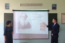 На уроке литературы (учитель Петухова Н.П.) Федорова Полина, ученица 9Б класса, выступила с индивидуальным заданием "Диалог с писателем", посвященным памятной дате - юбилею Л.Н. Толстого.