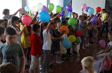 В конце праздника поблагодарила всех за работу начальник пришкольного оздоровительного лагеря «Солнышко» Михеева Ирина Юрьевна. И заключительным аккордом, в исполнении всех присутствующих, прозвучала песня «Шарики воздушные».