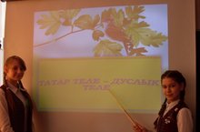 Сегодня ученики 7б кл.(кл.рук. Галиуллина М.Р.) провели беседу по теме «Татарский язык – язык дружбы»(«Татар теле-дуслык теле»). Дети просмотрели презентацию, поговорили о разных национальностей нашей республики, об их обычаях и про национальных костюмах, отгадывали загадки, под названием «Фонетическая каша» читали скороговорки.