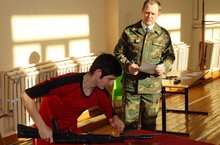 Сегодня в рамках месячника оборонной и спортивно - массовой работы среди учащихся 9 - 10 классов прошёл конкурс по строевой подготовке "Хорош в строю, силен в бою". В упорной борьбе первое место занял 10 класс, 2 место занял 9 "Б" класс, 3 место занял 9 "А" класс. Конкурс судило компетентное жюри в составе директора школы Ф.Ф. Гаффарова; учителей физической культуры Е.В. Малкина и А.К. Долгова. Конкурс организован учителем ОБЖ А.В Похлебкиным.