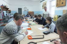 Папы 6А класса захотели помочь своим детям. Фролов С.Н., Халитов Р.Ш., Панов В.М., Андриянов А.Н. морозным субботним утром отправились вместе с детьми на урок технологии в ЦДОд. Фролов С.Н. провел тестирование учеников по знанию металловедения. Затем папы по теме «Рубка металла» показали хитрости овладения инструментами и материалами в рамках данного урока.