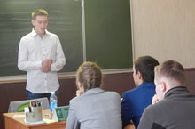 Перед учащимися 11 класса выступил студент Михайловской военной артиллеристской академии г. Санкт – Петербург Александр Вальщиков. Рассказ о своем учебном заведении он начал с показа видеофильма об академии, затем рассказал о поступлении, специальностях, требованиях, предъявляемых к абитуриентам, и условии обучения. О кооперативном институте (г.Казань) рассказал бывший выпускник школы Зиятдинов Альберт.