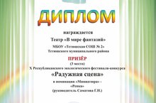 Театральный коллектив "В мире фантазий" МБОУ "Тетюшская СОШ №2 им. А.А. Соколовского" (руководитель Саматова Г.Н.) занял 3 место в номинации "Миниатюра".