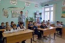 Юдин Алексей Владимирович подробно рассказал о деятельности своей организации. Так же он рассказал, что нужно бережно относится к лесу, привлекать внимания общества к проблемам сохранения, воспроизводства и приумножения лесных ресурсов, создания новых лесных массивов. В конце детям раздали форму.