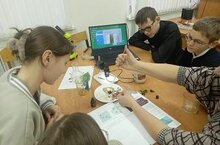 В школе работает кружок «Практическая биология», где ребята, используя оборудование Федеральной программы «Точка роста» изучают физиологическое состояние своего организма: измеряют температуру тела, оценивают функциональное состояние сердечно-сосудистой системы, системы дыхания, кожно-мышечную чувствительность, динаметрию максимального мышечного усилия и силовой выносливости мышц кисти и.т.д. На фото представлен момент, где учащиеся используя цифровое оборудование по физиологии ( сенсор пульса, мультидатчик, ПК с ОС Windows и установленным программным обеспечением ) иииспользуя метод фотоплетизмографию, определяют формы пульсовых волн ,делают подсчет пульса за 1 минуту. По полученным параметрам, учащиеся оценивают все параметры пульсовой волны, в том числе изменение оптической плотности ткани вследствие изменения объема крови в сосудах. Эти данные в дальнейшем используются для проектной работы : « Я и мое здоровье» -