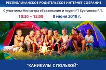 8 июня 2018 года состоится заседание Республиканского родительского интернет-собрания на тему: «Каникулы с пользой».