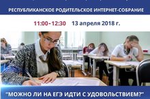 13 апреля 2018 года состоится республиканское родительское интернет-собрание на тему «Можно ли на ЕГЭ идти с удовольствием?» (Об эффективных методиках подготовки детей и подростков к аттестации знаний).
