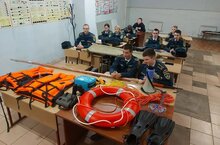 На фото — наши курсанты на теоретических занятиях по профессии «Матрос‑спасатель». Занятия проводит Евгений Дмитриевич Чиндаров — преподаватель колледжа и заведующий лабораторией ГО и ЧС.