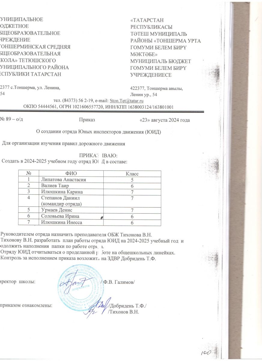 Приказ о мерах по обеспечению БДД