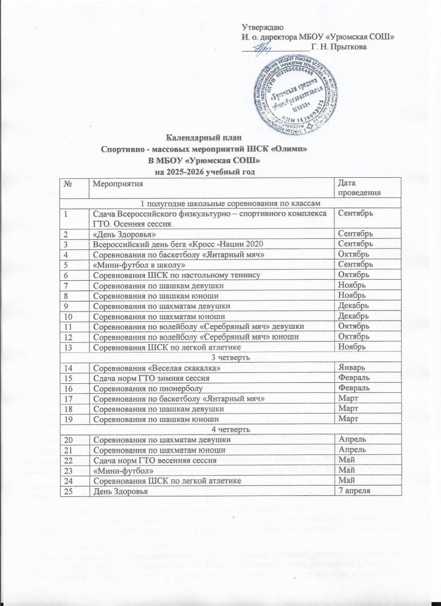 План спортивно-массовых, физкультурно-спортивных и социально-значимых мероприятий на учебный год (смотреть)