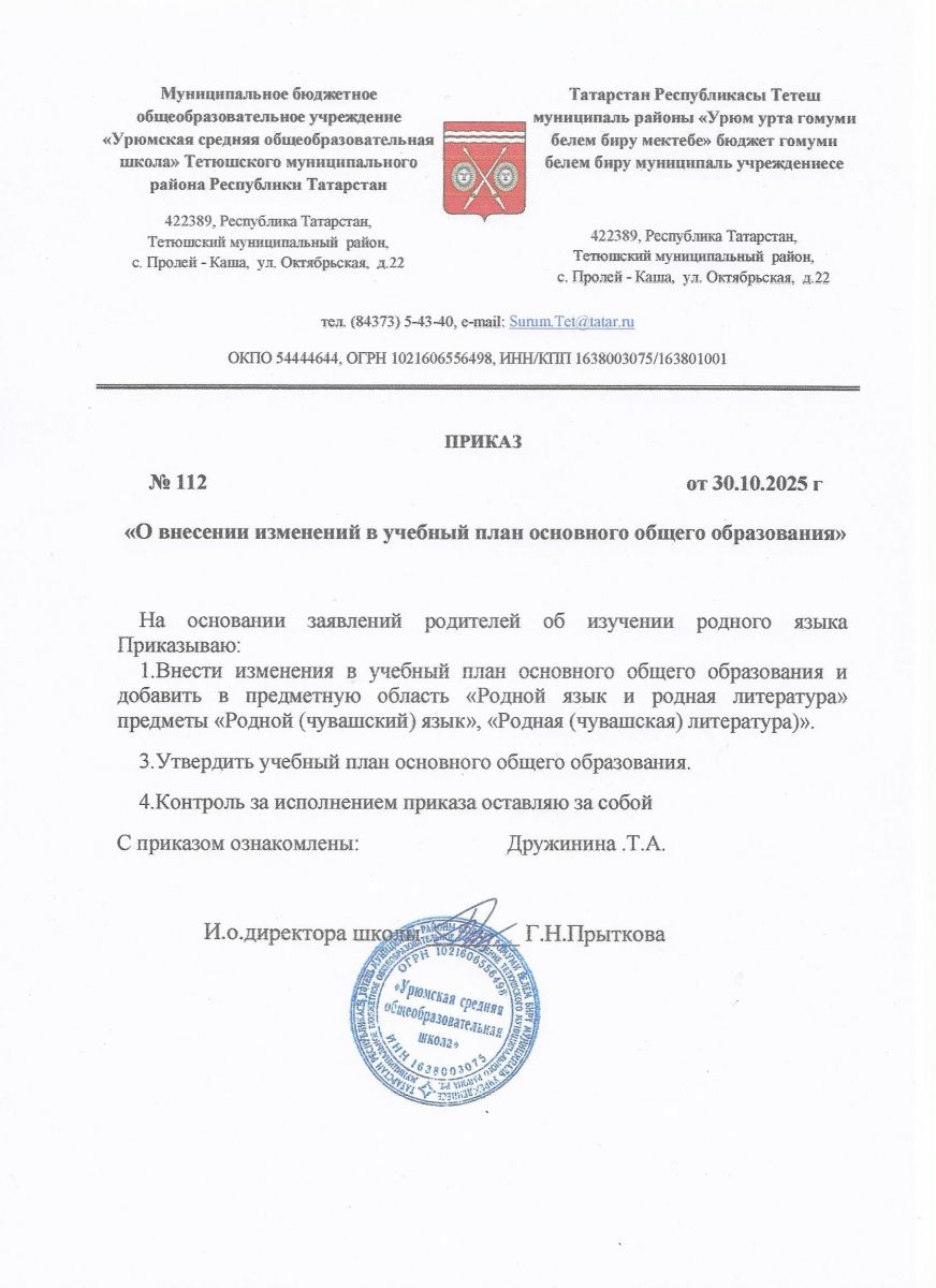 Муниципальное бюджетное общеобразовательное учреждение «Урюмская средняя общеобразовательная школа» Тетюшского муниципального района Республики Татарстан