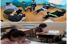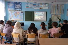 На фото запечатлены шестиклассники из МБОУ "Калмашская СОШ" по русскому языку и из МБОУ "Яна Булякская СОШ" по географии. -