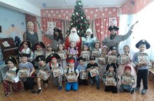 Дети пришли на представление нарядные, весёлые в предвкушении праздника. И их надежды оправдались. Воспитатели, дети, младшии воспитатели, участвовавшие в новогоднем представлении, проявили себя хорошими артистами, показав всё своё творческое мастерство, артистизм, задор и организаторские способности. Им пришлось перевоплотиться в разных героев: озорного Пирата, веселую Лисицу, Снегурочку, щедрого Деда Мороза. С самого начала представления сказочные герои увлекли детей в волшебный мир сказки. Дети смогли окунуться в праздничную атмосферу приключений, поучаствовать в интересных конкурсах. С появлением Деда Мороза начался настоящий праздник с песнями и танцами, хороводами вокруг ёлки. После представления дети читали стихи Деду Морозу и Снегурочке, фотографировались с персонажами, получали новогодние подарки.