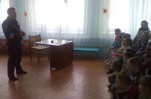 12 февраля 2013 года в МБДОУ – детский сад «Алёнушка» с.Бетьки Начальником ОГИБДД Ганиевым Ш.М. была проведена беседа с воспитанниками старшей и подготовительной группы о безопасности детей на дороге . Шамиль Мирсаетович объяснил детям как нужно вести себя на проезжей части , у подъездов где стоят транспортные средства . Подчеркнул , что необходимо пользоваться детским автокреслом , напомнил о ремнях безопасности при движении транспортного средства . Дети очень внимательно слушали и задавали вопросы , на которые Шамиль Мирсаетович отвечал доходчиво , приводя примеры из жизненных ситуаций . Беседа была увлекательной и поучительной .