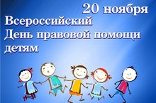 Всероссийский День правовой помощи детям, установленный решением Правительственной комиссии по вопросам реализации Федерального закона от 21.11.2011 № 324-ФЗ «О бесплатной юридической помощи в Российской Федерации», пройдёт 20.11.2019 МКУ «Управления образования» 119 кабинет, г. Набережные Челны пр-т М. Джалиля д.46.